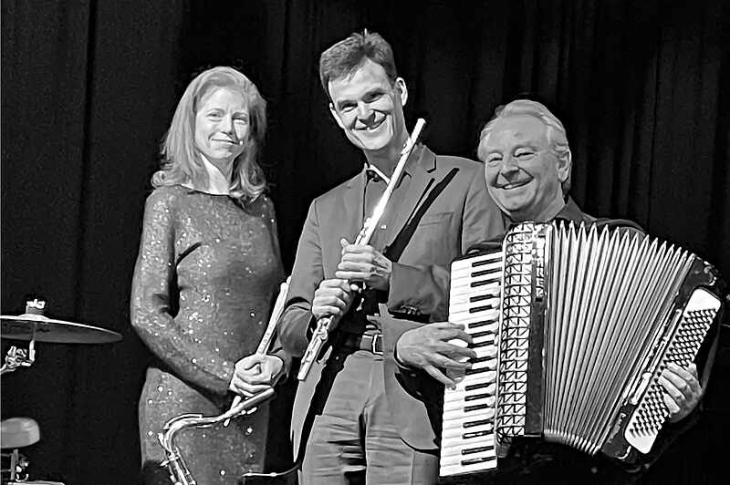 Moody Tunes zaubern aus ihrem Fundus ein Potpourri von wunderbaren Melodien, gespielt von Christian Müller an der Querflöte oder am Saxophon, umspielt von René Heids virtuosen Akkordeon-Klängen, begleitet von Bettina Urfer am Klavier oder an der Percussion mit ihren feinsinnigen Rhythmen – ein wahrer Musikgenuss!